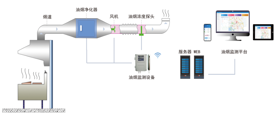 (4)监察难度大:餐饮企业数量巨大,靠人力监管无法实现全覆盖;部分净化设备安装在天花板内、高楼平台等,导致监管人员心有余力不足。