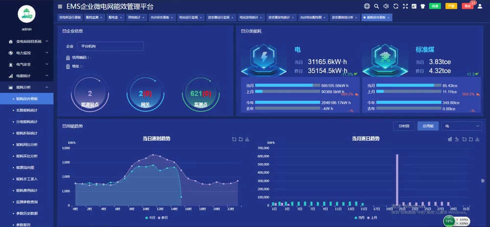 嘉定污水处理厂EMS电能管理系统项目分为三个低配间,两个箱变和光伏设备,做到数据互通,电力数据实时显示在电力一次图上面。