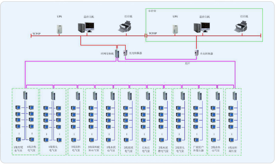中材萍乡水泥有限公司已于2011年在新线35kV总降变电所建成智能配电管理系统,实现对总降变19个用电回路的计量。由于企业的智能化管理需求,需要对整个厂区关键生产设备的科学管理,对重点用电回路的用电状况进行全过程连续监测、集中控制、统一调度,同时按照国家有关节约能源的法规、标准及行业有关规定,制定各用能部门、主要耗能设备和生产工序(工艺)的能耗定额,并将各项定额逐级下达,并对定额的完成情况进行考核和奖惩。