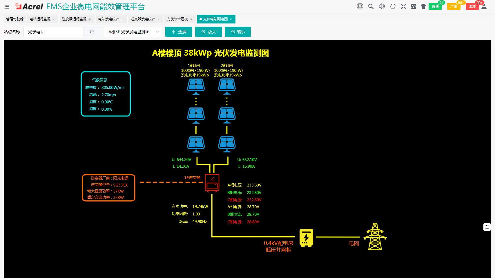 对逆变器运行和电站进行监测,对电站发电进行统计和分析,并计算日月年发电量以及相关收益。
