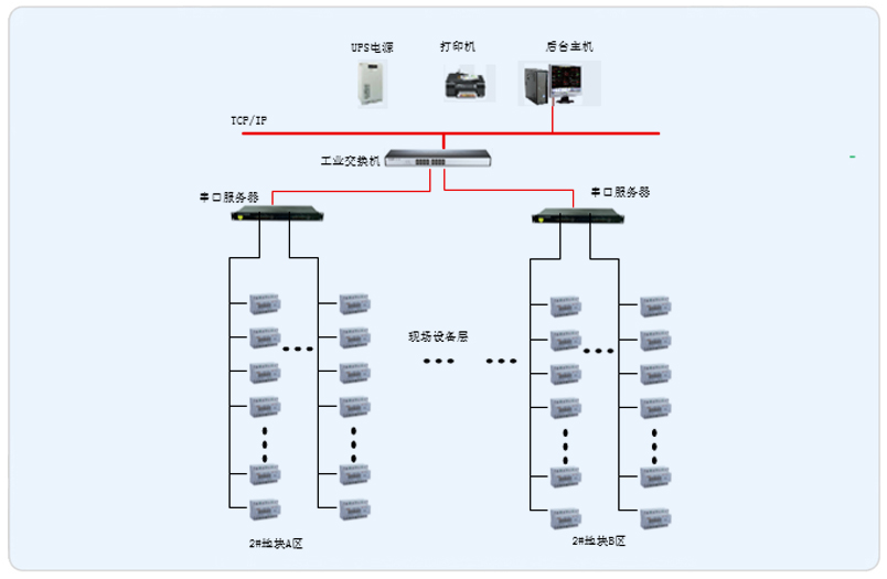 本项目为遵义奥特莱斯城市广场的2#地块,其中分为A区和B区,A、B两个区域,共使用了型号为DDSY1352-NK和DTSY1352-NK的内控型预付费电表328只。安科瑞Acrel-3200远程预付费管理系统根据遵义奥特莱斯城市广场实际情况进行组网设计,因为物业要求电费由财务收取,所以将远程预付费管理系统主机设置在财务室内,而且现场仪表到财务室的距离都不超过300米,所以采集器都安装在财务室内的操作台里,现场所有的内控型预付费电表都是通过RS485总线直接入到采集器。