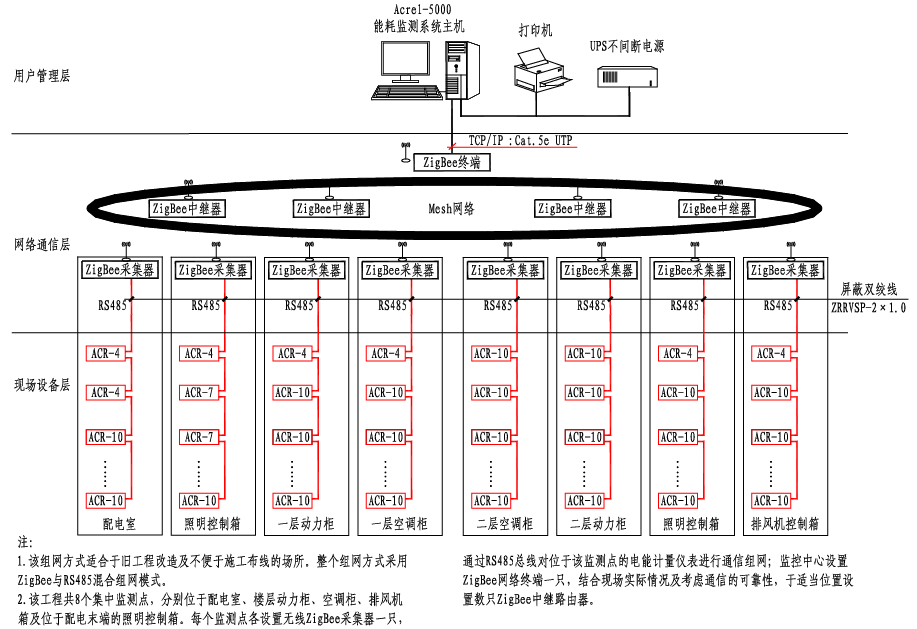 ZigBee无线网络能耗监测系统组网示意图