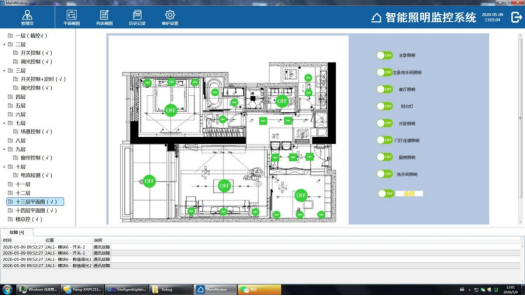 1)实时检测并显示各个模块的在线状态,反馈现场受控回路的开关状态,监控界面按照楼层各分区的布局和回路列表来浏览。