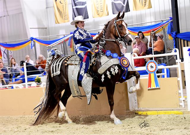 The modern show ring parade horse can be of any breed, with American Saddlebreds, Morgans, and Hackney ponies being some favorite choices. A typical turn-out for a parade horse includes elaborate forms of Western tack including a bridle, breast-collar, and stock saddle adorned heavily with silver. The rider is most commonly attired in brightly-colored, elaborately decorated Western wear typical of the "Old West" in United States history. A winning parade horse has impeccable manners and is shown at two gaits: the animated walk and the “parade gait” —a true, straight, square, high-prancing, balanced, and collected trot.