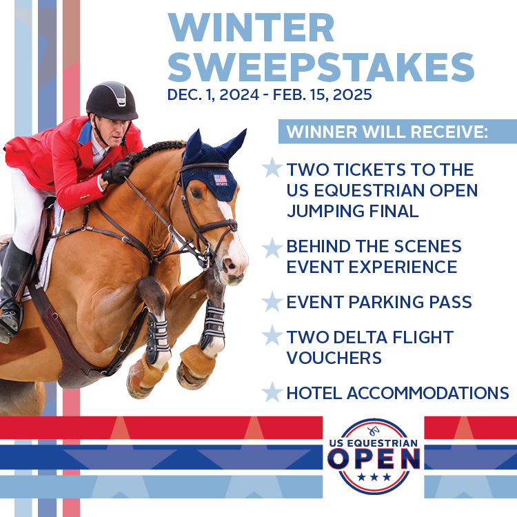 Enter the USEF Winter Sweepstakes for your chance to win a trip to Wellington for the US Equestrian Open Jumping Final. Enter the sweepstakes at usef.org/sweepstakes.