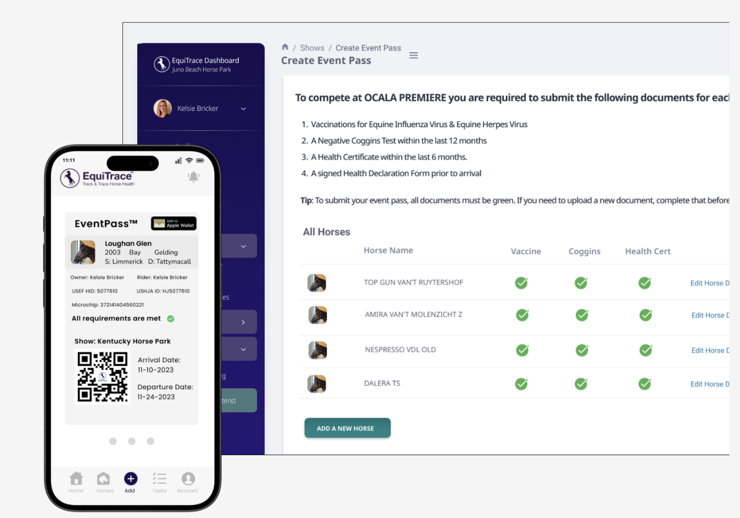 “We are thrilled to partner with US Equestrian to launch EventPass. This innovative solution is designed to simplify and enhance how competitors, trainers, and officials manage horse health documents,” said EquiTrace CEO Killian Gaffney. “By automating document verification and streamlining entry processes, we’ve developed a more efficient, secure, and user-friendly experience for everyone involved. We’re proud to support the equestrian community with cutting-edge technology and can’t wait to see EventPass in action at horse shows across the United States.”